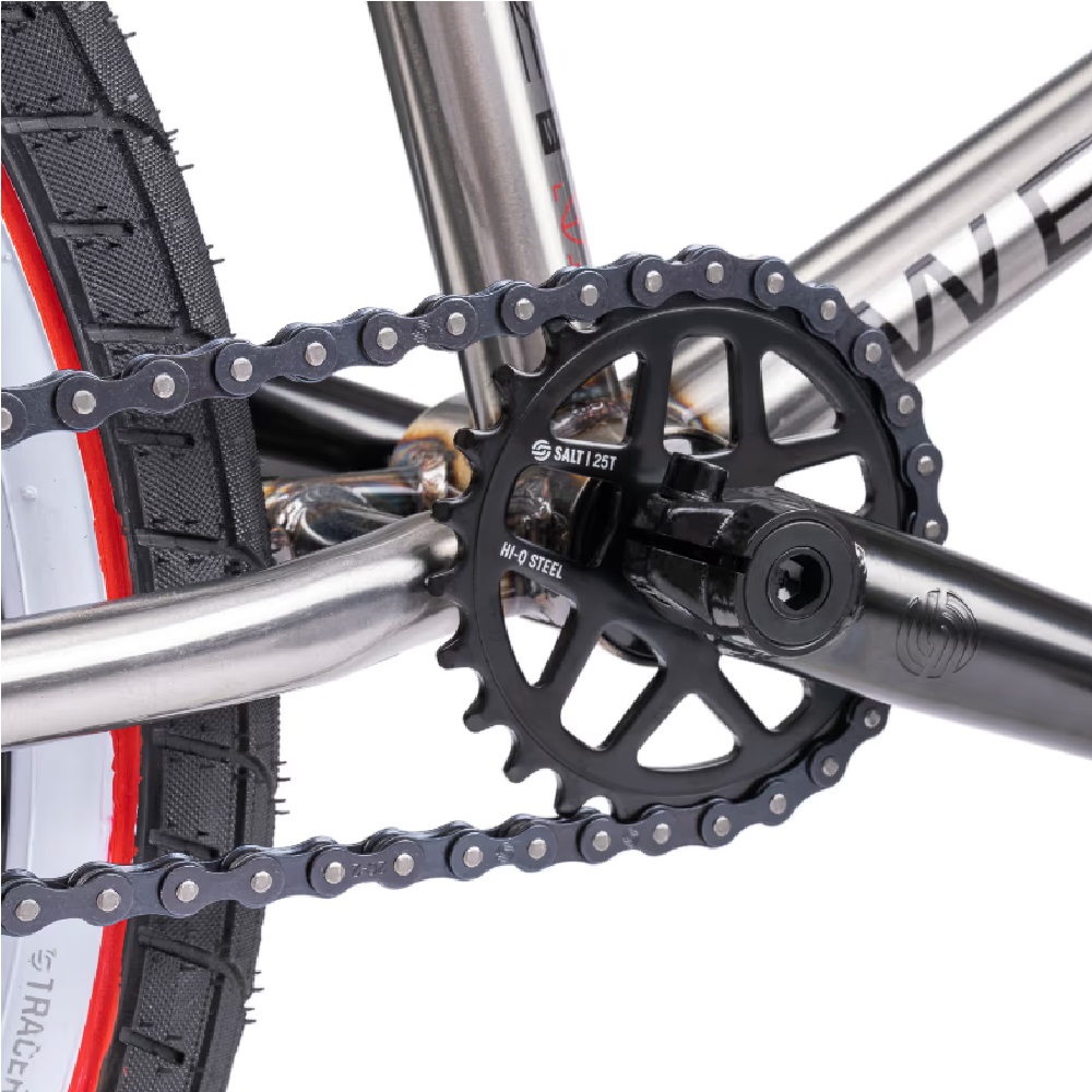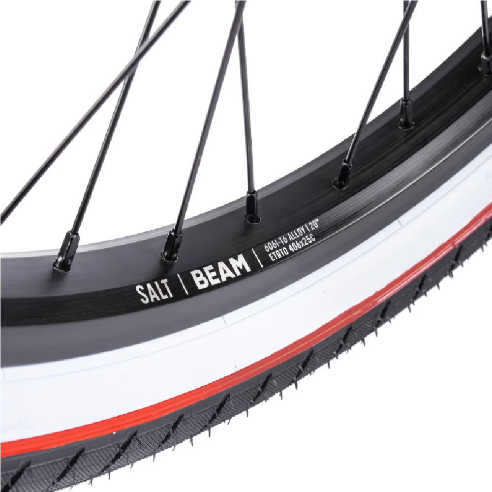 Завдяки шинам SALT “TRACER” розміру 2.35″, велосипед впевнено тримається на дорозі, а ободи SALT “BEAM” з одинарними стінками надають легкість і міцність.