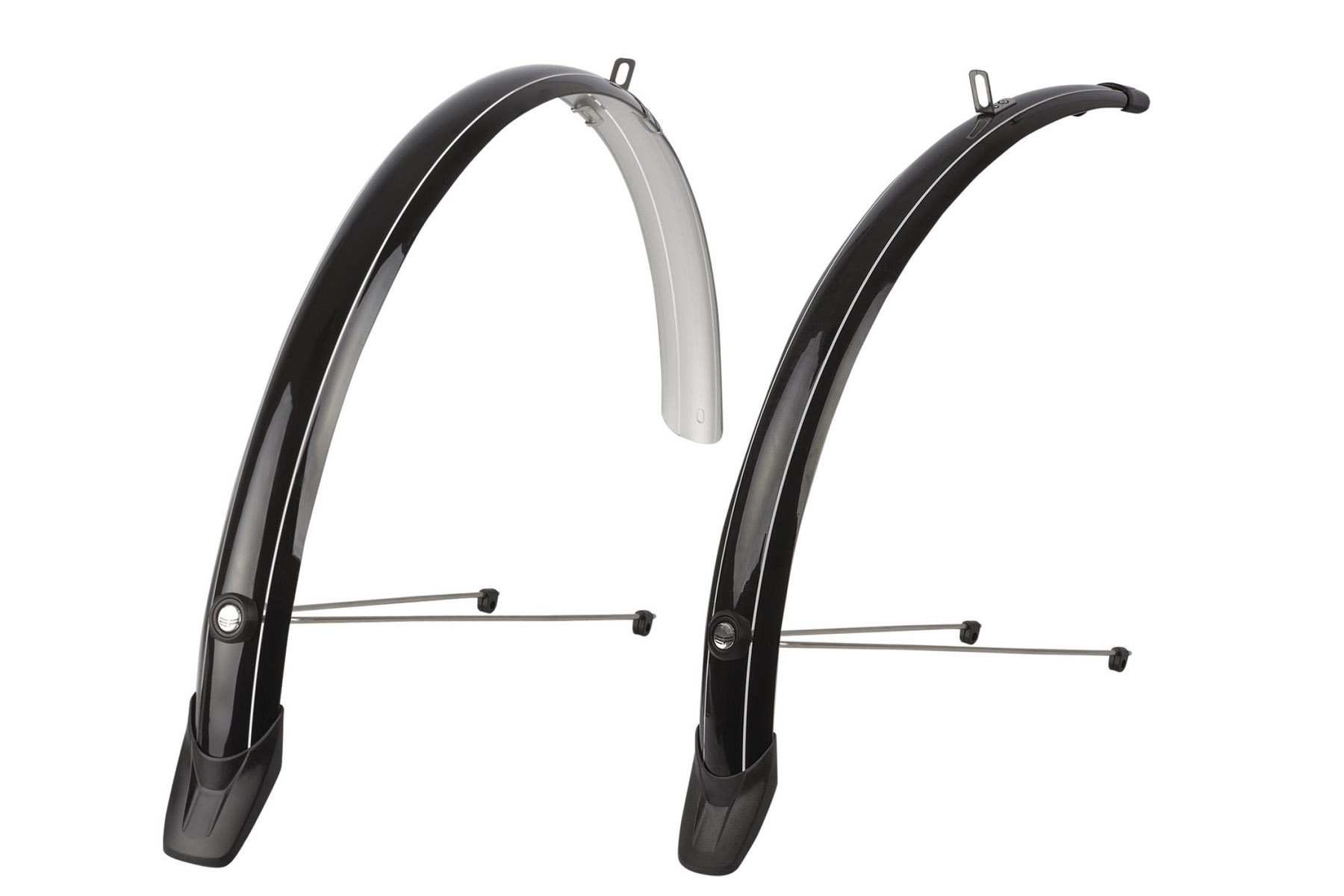 Крила виконані з високоякісного пластику, а стійки з неіржавіючої сталі. Завдяки своєму розміру крила щільно прилягають до колеса та не пропускають бруд та воду, а невеликі бризковики захистять ноги та взуття від бризг.