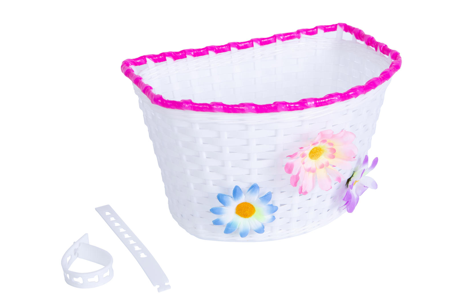 Кошик Пластик з кріпленням на кермо/виніс 16-20″ 150*165*235 мм без стійки BRAVVOS FL-BS22-02 білий з рожевим